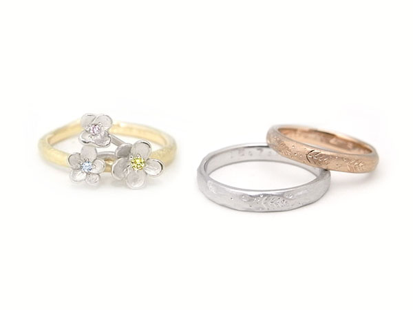 Voice No.132「ライラックエンゲージリング&はばたきマリッジリング」 お客様の声 2015/12/13 エンゲージリングとマリッジリングの両方をお願いしました。デザインの好みや色など、すべて一つ一つ聞いて下さって、本当に本当に素敵なものが出来ました。ありがとうがざいます!また記念日などに利用させていただきます。